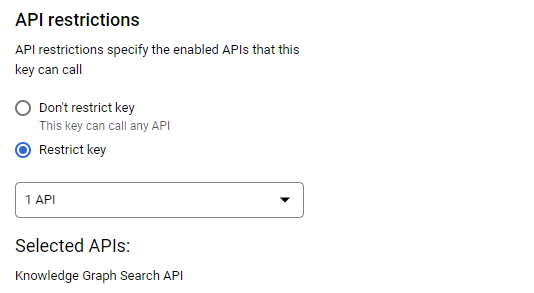 Then, edit the API key's permissions to add restrictions to only allow access to Knowledge Graph.