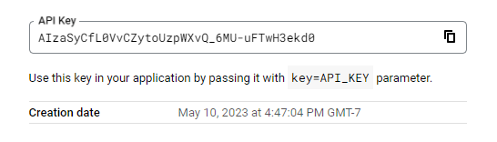 Then, copy the key that has been created. It will subsequently be referred to as YOUR_KG_API_KEY.