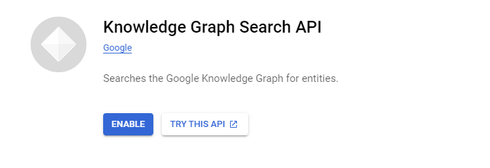 From the web console, visit "APIs & Services" and search for Knowledge Graph. Enable the API.