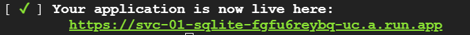 us-central1)The container will then be built and pushed to Google's Artifact Registry and then deployed onto Cloud Run. When deployed, a URL will be returned. Make a note of it.