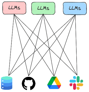 Prior labs show examples where agents leverage built-in tools or custom-built tools provided by the application writer. As shown below, each LLM application would then execute its own code for accessing services.