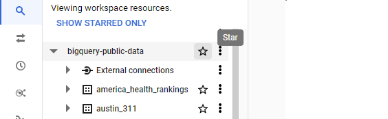 Scroll up to "Star" the bigquery-public-data set for ease of access.