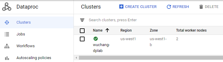 View the cluster in the web console of Dataproc