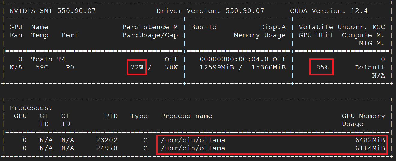 Monitoring the GPU usage as models are being run can be helpful in understanding the performance of the models. In order to do so, ssh into the VM and run a command to poll the NVIDIA card for its power usage, its GPU utilization, and its memory utilization.