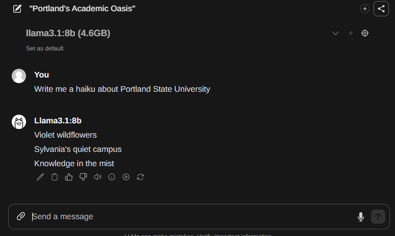 Entering in the name of the model, then clicking the green download button will download, verify and install the model for use in the web interface. Visit the Ollama library to find the names of additional models you'd like to experiment with for the class and download each of them. A variety of LLM benchmarks have been performed on various models. One can visit one LLM leaderboard here: https://lmarena.ai/leaderboard . When selecting models, ensure that they fit within the GPU memory of the accelerator. Download and install a Llama model along with any others you wish to experiment with for the course.