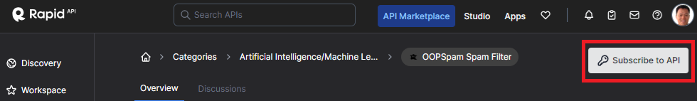 There are many intelligence APIs available through Rapid API. In this set of exercises, we'll utilize a set of APIs that provide free subscriptions. The first API is the mailcheck service at https://rapidapi.com/Top-Rated/api/e-mail-check-invalid-or-disposable-domain. The second is the OOP Spam Filter at https://rapidapi.com/oopspam/api/oopspam-spam-filter. Navigate to each service's landing page on Rapid APIs, enable the API and then subscribe to the API using its free plan.