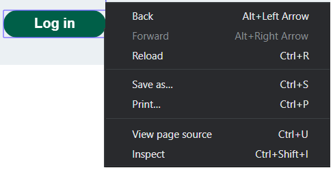 We'll begin with a general overview of how authentication on the PortSwigger site is done via its login form. Visit the first authentication level and click "Access the lab" to instantiate it. Then, click "My account" which will redirect you to the login form at /login. Inspect the form by right-clicking the "Log in" button and then clicking "Inspect" to view the page via the browser's Developer Tools as shown below.