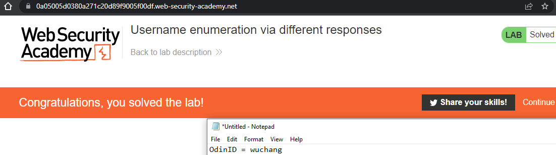 resp.text to see if "Invalid username" or "Incorrect password" appears./my-account?id={username}') and searching for a string in resp.text indicating the user account. For example "Hello, carlos" for when we have successfully logged in with username = 'carlos'. Solve the level by successfully logging in and accessing the profile page of the compromised account.