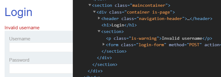 While in the examples above, we look for a <p> tag with an 'is-warning' class to determine if our login was successful, there are also other ways for doing so. Other options include: