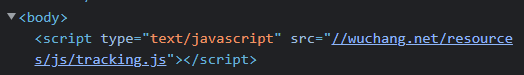 Click on the "Elements" tab in the Developer Tools and find the <script> tag for a tracking script that immediately follows the initial <body> tag. Note that it includes the web site's name in its URL.