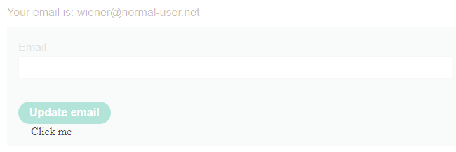 Finally, modify the pixel offsets for the "Click me" button in your exploit to align it with the "Update email" button, then deliver the exploit to the victim to solve the level.