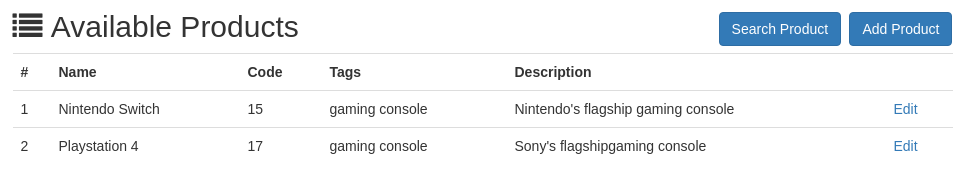 {"name":"Playstation 4","code":"17","tags":"gaming console","description":"Sony's flagshipgaming console"}