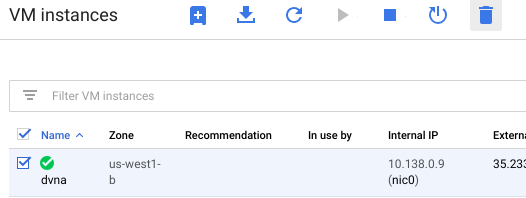 Google Cloud Console → Compute Engine → VM Instancesdvna"us-west1-b as a zoneUbuntu 22.04 LTS" as a boot disk.Firewall" section, click on the "Allow HTTP traffic" checkboxOne can bring up a VM via the gcloud command in Cloud Shell. Visit the console and click on the Cloud Shell icon. Then, run the command below to create a firewall rule to allow HTTP traffic and then launch the VM with the rule attached to it.