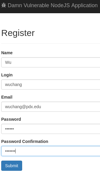 Search for "<name-of-vulnerable-package> deserialization nodejs" to find a write-up of how to exploit the use of deserialization in this package. We will be using this technique to create a file on the server that is hosting the vulnerable application. Answer the following question for your lab notebook:
