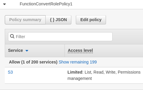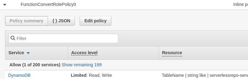 FunctionConvertRolePolicy0 has given read and write permissions to the backend database. Specifically, this gives the function the following permissions: