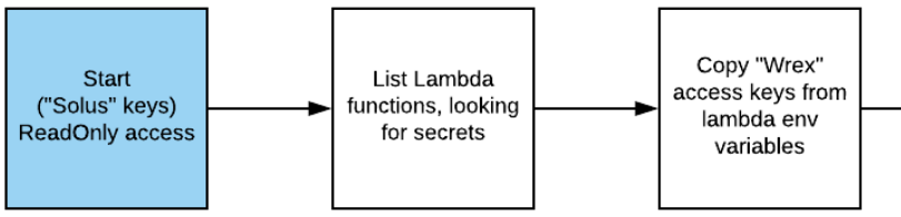 While the profile is able to list the Lambdas, it does not have the ability to execute them. However, listing the functions also lists the environment variables that the Lambda has been given. Unfortunately, it is often the case that AWS credentials are sent via environment variables since it is best practice not to include them within source code. From the listing, identify an EC2 access key that the Lambda function uses to authenticate itself to project resources. Add a profile called wrex that contains these credentials specifying us-east-1 for the region.