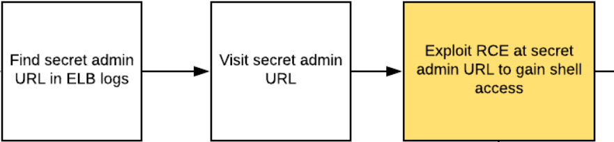 The log files reveal a secret admin URL that is part of the web service being hosted. Unfortunately, there is a remote-code execution vulnerability within it. Exploit it to gain command access on an EC2 instance.