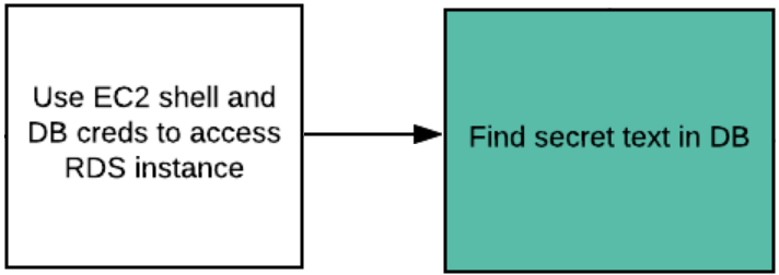 We will then use the database credentials and the location information of the RDS backend to then access the database and reveal the secret text.