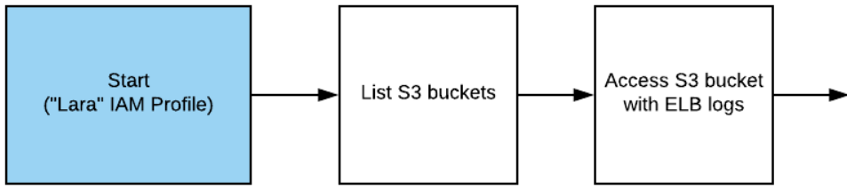 Starting with Lara's limited credentials, list the S3 buckets it can access and find that one of them has log files from an Elastic Load Balancer instance the account is running.