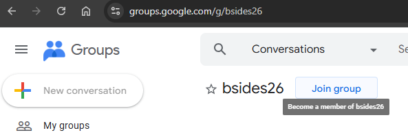 A Google Group has been created and granted Compute Admin privileges to the pentest-mcp Google Cloud Project being used to run the workshop examples. Visit the group's URL at https://groups.google.com/g/bsides26 and join it with the Google account you will use to access the lab exercise.