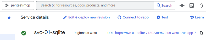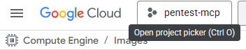 Log into your Google account added above, then visit the web console at https://console.cloud.google.com/, select the pentest-mcp project from the project picker.